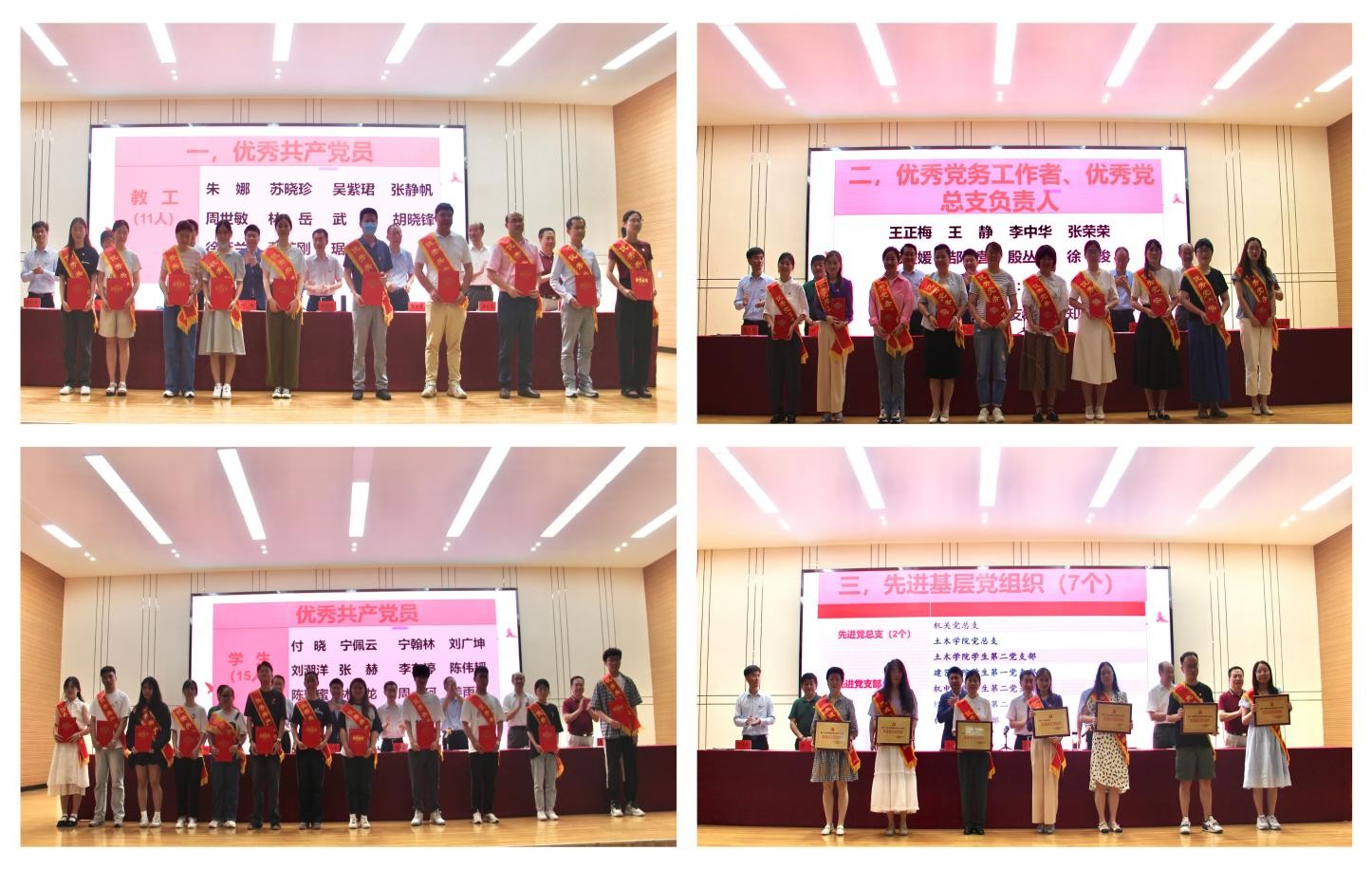 林瀚宣读了《关于表彰2023年度优秀共产党员、优秀党务工作者、优秀党总支负责人、先进基层党组织的决定》。校领导分别为获奖者颁发证书并合影留恋。
