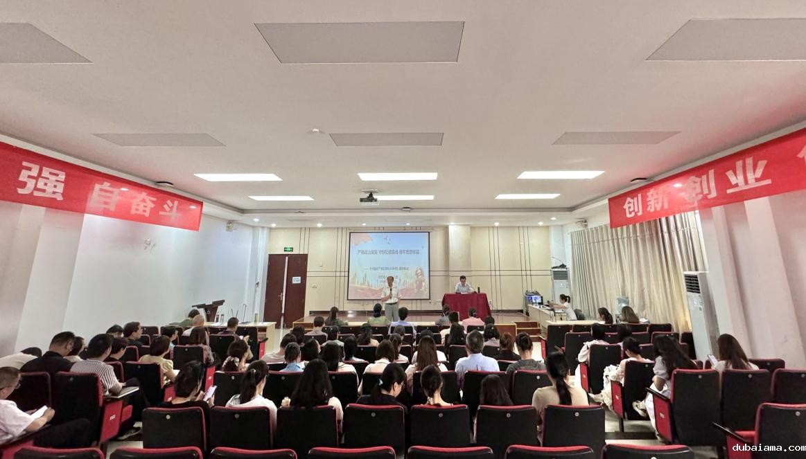 本网讯:为推进党纪学习教育在学校落到实处、见到实效,6月13日上午,校党委书记成祖德以《严明政治规矩 守好纪律底线 铸牢思想根基》为题,深入领学解读新修订的《中国共产党纪律处分条例》精神,给学校党员干部讲授纪律专题党课,全校中层管理干部、全体基层党支部书记和思政课教师参加专题党课学习。纪委书记、党纪学习教育专班办公室主任李义宝主持专题党课。
