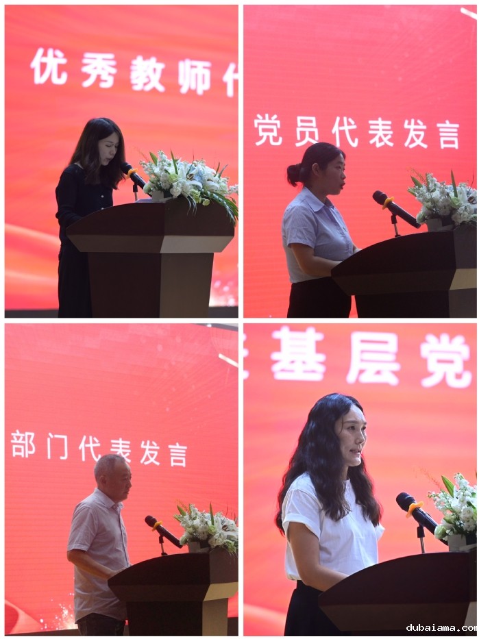 优秀教师代表、优秀教工党员代表、优秀集体代表和先进基层党组织代表相继上台发言,他们立足各自岗位,畅谈工作中的感受与收获,表达了他们为教育事业奋斗的坚定意志和为教育强国建设的坚强决心,展现了我校教职工躬耕教坛的敬业奉献精神。