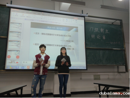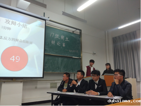 比赛开始,双方辩手相互阐述自己的观点后,相互提问,相互反驳,而自由辩论环节则使辩论赛达到了白热化阶段,辩手们唇枪舌剑,以有理有据的语言来反驳对方观点中的漏洞。精彩的辩论引来同学们一阵阵热烈的掌声。