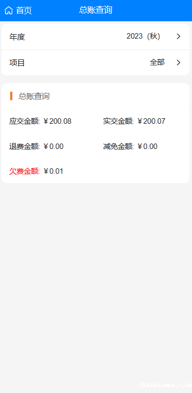 1.点击学费查询→总账查询可查看学生当前欠费信息